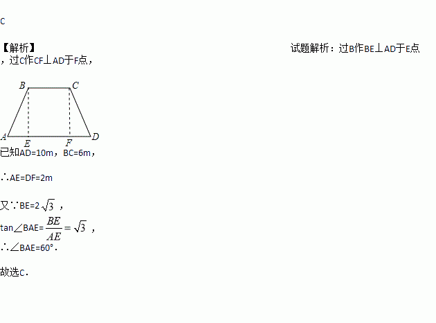 有一拦水坝的横截面是等腰梯形,它的上底为6米,下底为10米,高为2米,那么拦水坝斜坡的坡度和坡角分别为( )