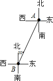 15.在点A处测点B方向为北偏东30°,则在点B处测点A方向为南偏西30°.分析 先根据题意画出几何图,然后根据图形进行判断.