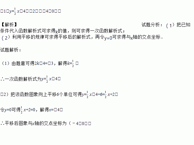 (2)将该函数的图象向上平移6个单位,求平移后的图象与x轴的交点的坐标.