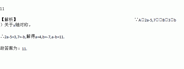 已知直角坐标系中,A(2a-5,7)、B(3,b)关于x轴对称,则式子的值是__________.