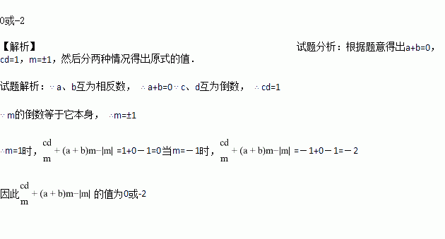 已知a、b互为相反数,c、d互为倒数,m的倒数等于它本身,求代数式