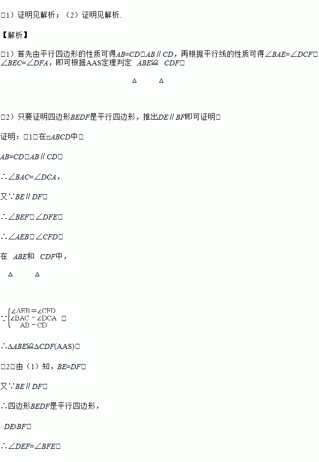 如图,□ABCD,BE//DF,且分别交对角线AC于点E,F,连接ED,BF .