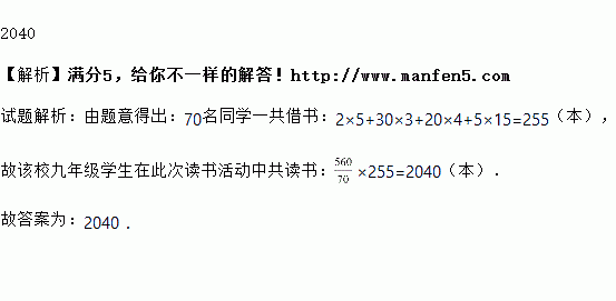 某校九年级有560名学生参加了市教育局举行的读书活动,现随机调查了70名学生读书的数量,根据所得数据绘制了如图的条形统计图,请估计该校九年级学生在此次读书活动中共读书________本.