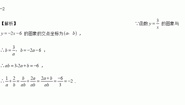 设函数y=与y=-2x-6的图象的交点坐标为(a,b),则+的值是________.