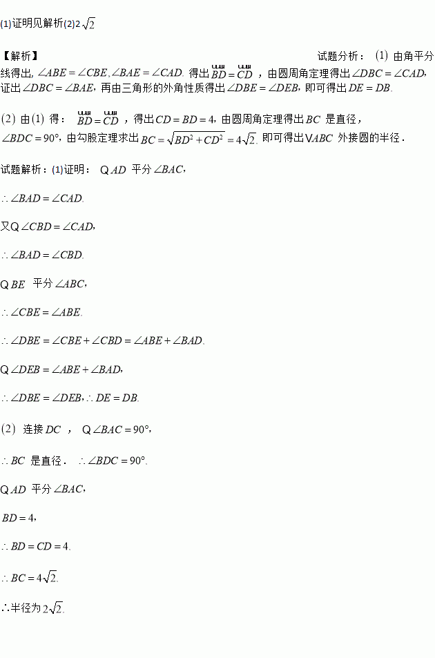 (2)若∠BAC=90°,BD=4,求△ABC外接圆的半径.