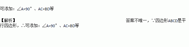 已知平行四边形ABCD,请补充一个条件,使它成为矩形ABCD.你补充的条件是 .