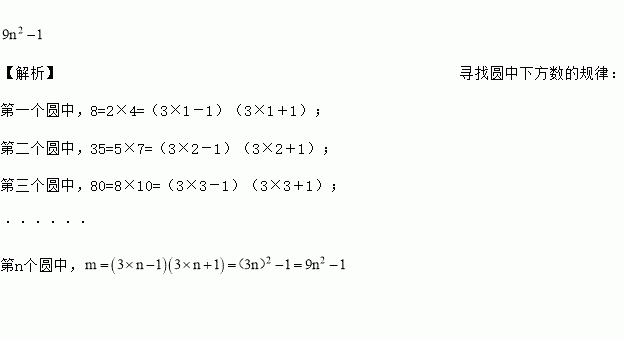 图中各圆的三个数之间都有相同的规律,据此规律,第n个圆中,m= ▲ (用含n的代数式表示).