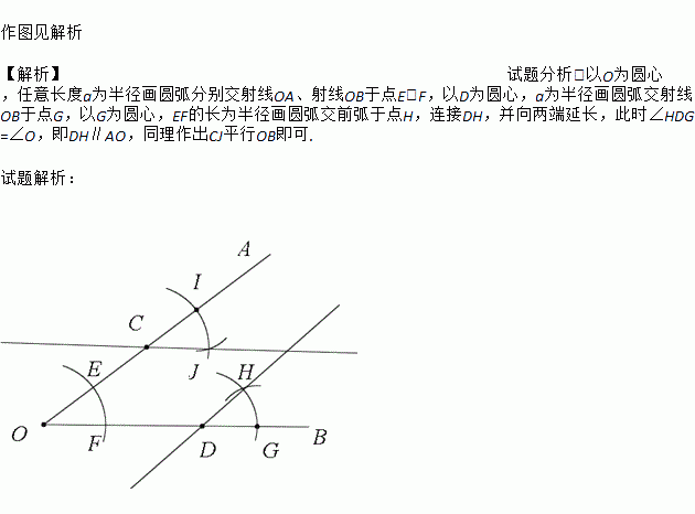 如图, 是学校花园内两条小路组成的角, 在上, 在上,现在过点、点分别建一条平行于和的小路,你能用尺规在图上画出它的位置吗?