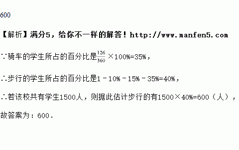 如图,某校根据学生上学方式的一次抽样调查结果,绘制出一个未完成的扇形统计图,若该校共有学生1500人,则据此估计步行的有_____.