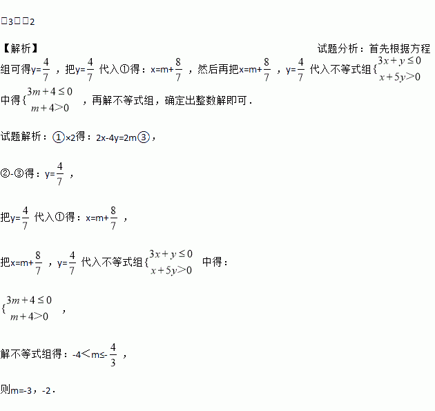 已知关于x,y的方程组的解满足不等式组,求满足条件的m的整数值.