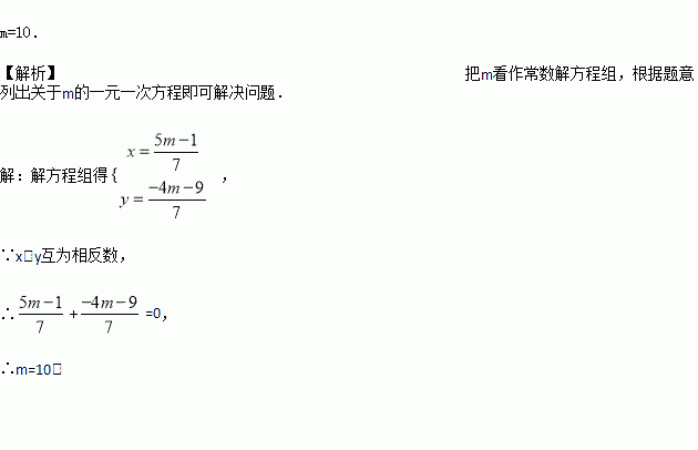 关于x,y的二元一次方程组的解互为相反数,求m的值.