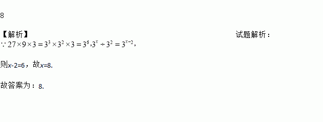 27×9×3=3x÷32,则 x = ________ .
