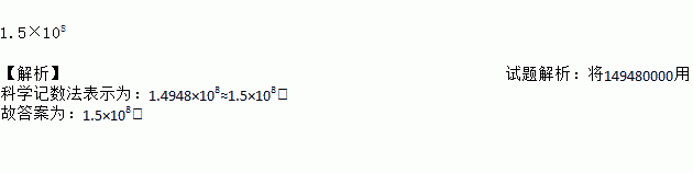 1.5×108 【解析】试题解析:将149480000用科学记数法表示为:1.4948×108≈1.5×108. 故答案为:1.5×108.