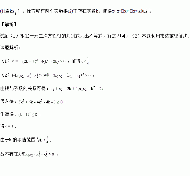(2)是否存在实数k,使得x1·x2-x12-x22≥0成立?若存在,请求出k的值;若不存在,请说明理由.