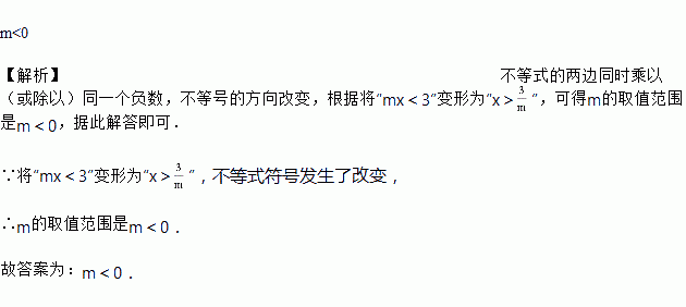 根据不等式的基本性质,将“mx<3”变形为“”,则m的取值范围是_______.