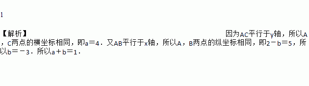 已知点A(a,5),B(2,2-b),C(4,2),且AB平行于x轴,AC平行于y轴,则a+b=________.