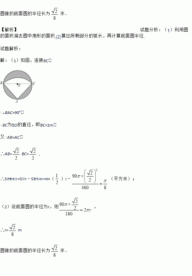 (2)用所留的扇形铁皮围成一个圆锥,该圆锥的底面圆的半径是多少?