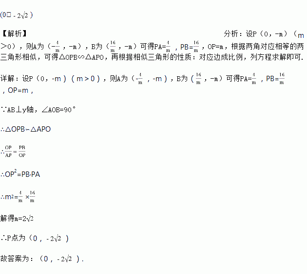 (x>0)图象如图所示,点P 是y轴负半轴上一动点,过点P作y轴的垂线交图象于A,B两点,连接OA、OB.当点P移动到使∠AOB=90°时,点P的坐标为________________.