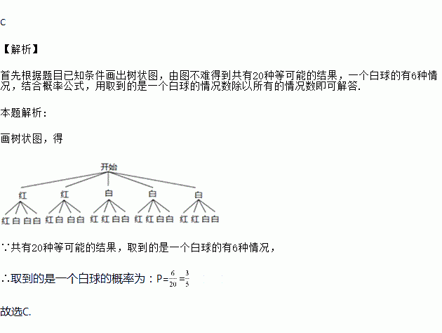 一个盒子装有处颜色外其它均相同的2个红球和3个白球,现从中任取2个球,则取到的是一个红球、一个白球的概率为( )