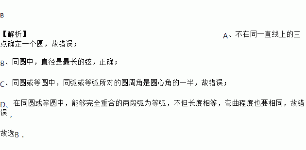 A. 三点确定一个圆 B. 同圆中直径是最长的弦