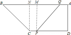 ②过C作CN⊥AB于N,过P作PM⊥BQ于M,得出矩形CPMN,推出CN=PM,CP=MN,求出BN=MQ=2,根据BN+MN+QM=3t,代入求出即可;