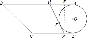 ③过P作PE⊥AB于E,得出矩形ADPE,推出AE=DP,AD=PE,根据切线长定理得长PQ=QA+PD=26-2t,在Rt△PEQ中,根据勾股定理得出一个关于t的方程,求出方程的解即可.