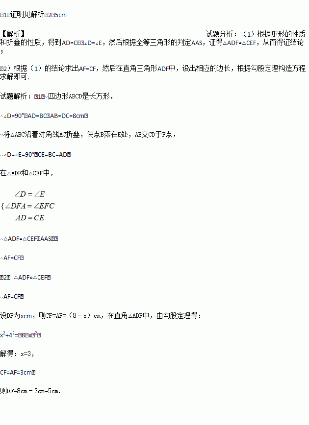 如图,长方形ABCD中,AB=8cm,AD=4cm,将△ABC沿着对角线AC折叠,使点B落在E处,AE交CD于F点.