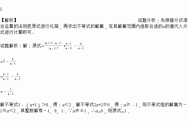 先化简:; 再在不等式组的整数解中选取一个合适的解作为a的取值,代入求值.