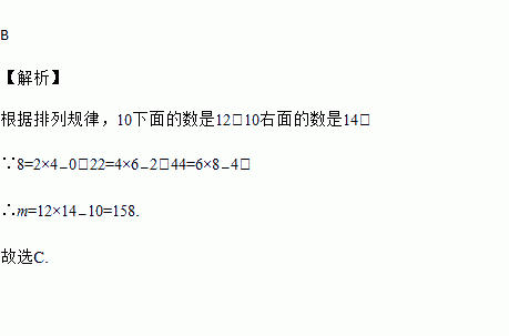 填在下面各正方形中的四个数之间都有相同的规律,根据这种规律,m的值是( )