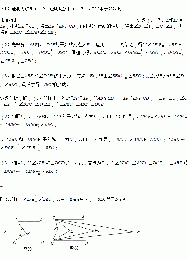(3)猜想:若∠En=α度,那∠BEC等于多少度?(直接写出结论).