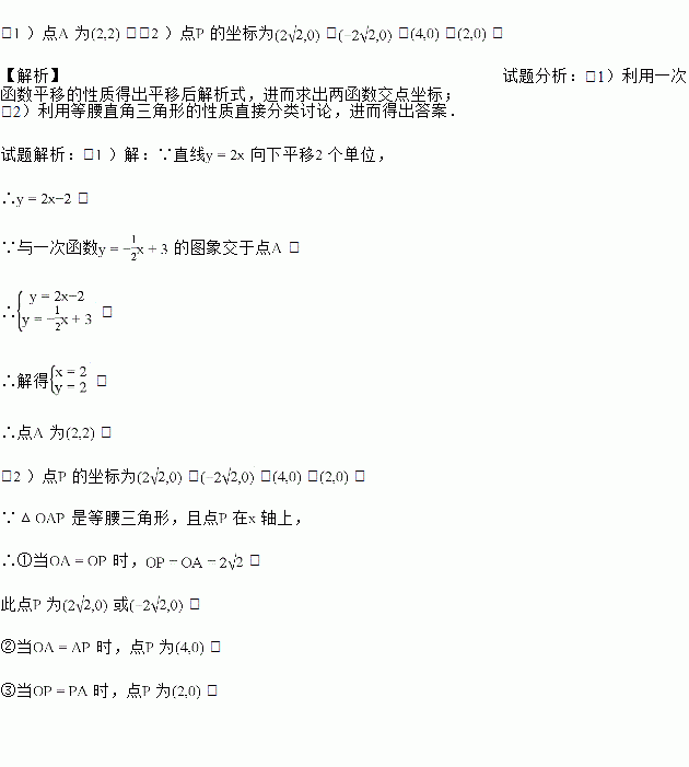 在平面直角坐标系中,将直线向下平移个单位后,与一次函数的图象相交于点.