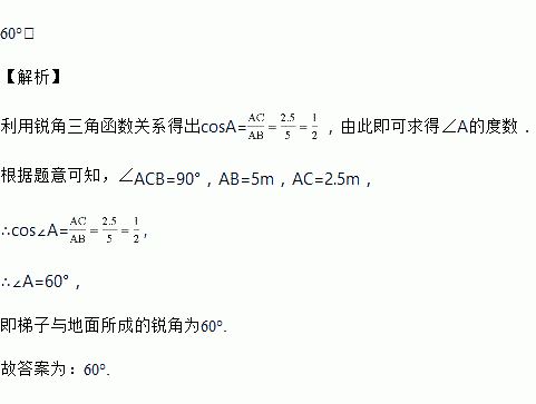 一架梯子斜靠在一面墙上,已知梯长5m,梯子位于地面上的一端离墙壁m,则梯子与地面所成的锐角为______