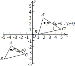 如图,已知A(-4,-1),B(-5,-4),C(-1,-3),△ABC经过平移得到的△A′B′C′,△ABC中任意一点P(x1,y1)平移后的对应点为P′(x1+6,y1+4)