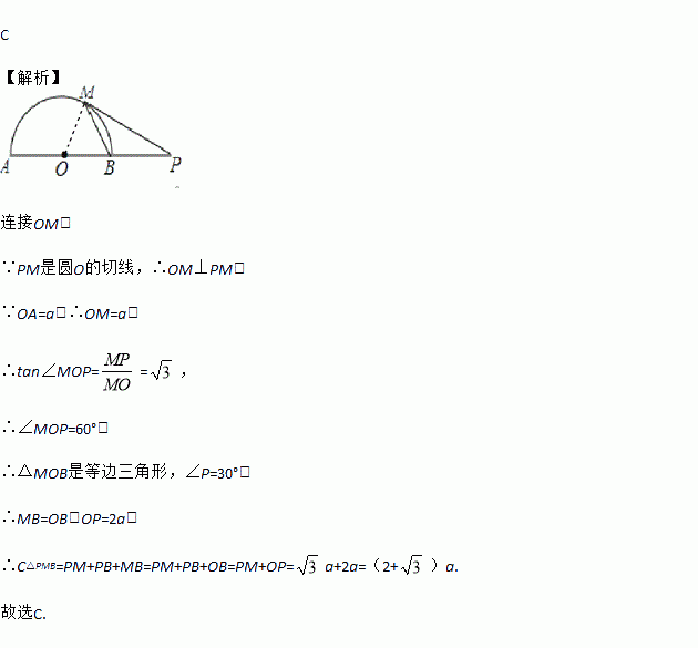 如图,AB为的直径,P点在AB的延长线上,PM切于M点,若,那么的周长是