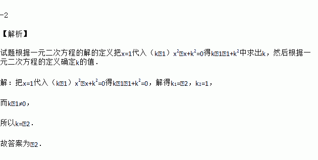 若关于x的一元二次方程(k﹣1)x2﹣x+k2=0的一个根是1,则k的值为__.
