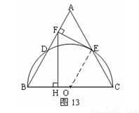 如图,已知等边三角形ABC,以边BC为直径的半圆与边AB、AC分别交于点D、点E,过点E作EF⊥AB,垂足为点F.