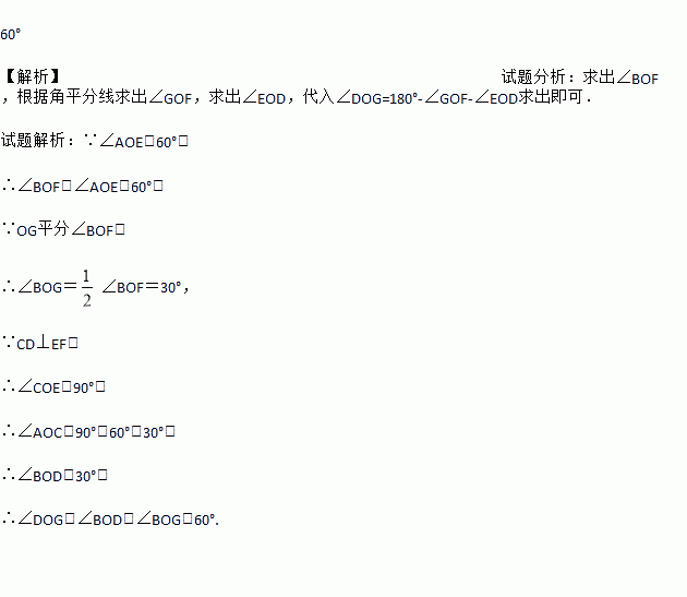 如图,直线AB,CD,EF交于点O,OG平分∠BOF,且CD⊥EF,∠AOE=60°,求∠DOG的度数.