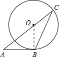 分析:连接OB,根据切线的性质得到OB⊥AB,根据三角形的内角和定理求出∠AOB的度数,由∠C和∠AOB是同弧所对的圆周角和圆心角,根据圆周角定理即可求出∠C,也可得出sin∠C.