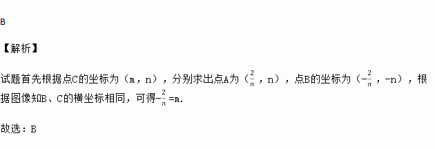 在第一象限的分支上的一个动点,连接AO并延长交另一分支于点B,过点A作y轴的垂线,过点B作x轴的垂线,两垂线交于点C,随着点A的运动,点C的位置也随之变化.设点C的坐标为(m,n),则m,n满足的关系式为( )