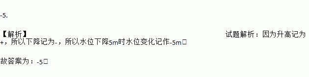 如果水位升高3m时,水位变化记作+3m,那么水位下降5m时,水位变化记作: m.