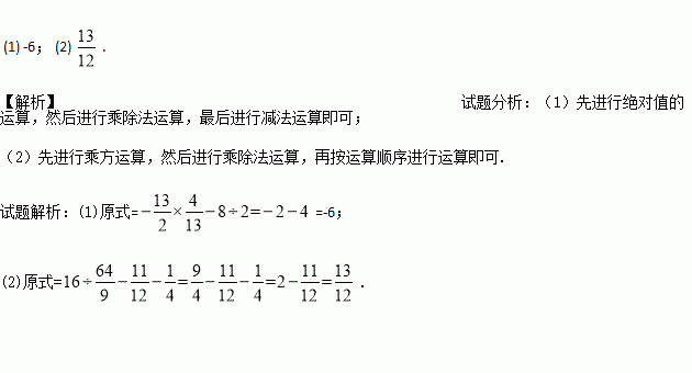 (2)(-2)4÷(-2)2+5×(-)-0.25.