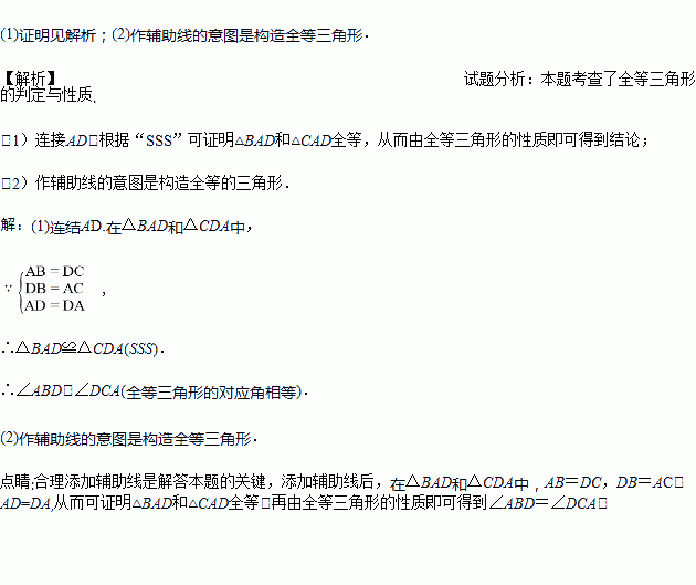 (2)在(1)的证明过程中,需要作辅助线,它的意图是什么?