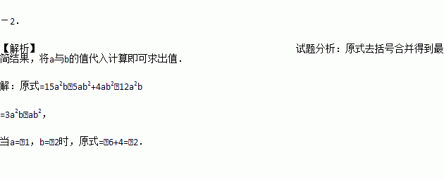 先化简,再求值:5(3a2b-ab2)-4(-ab2+3a2b), 其中a=-1,b=-2.