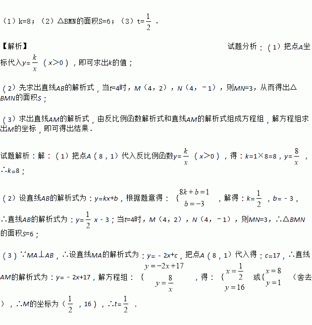 (x>0)的图象经过点A,动直线x=t(0<t<8)与反比例函数的图象交于点M,与直线AB交于点N.