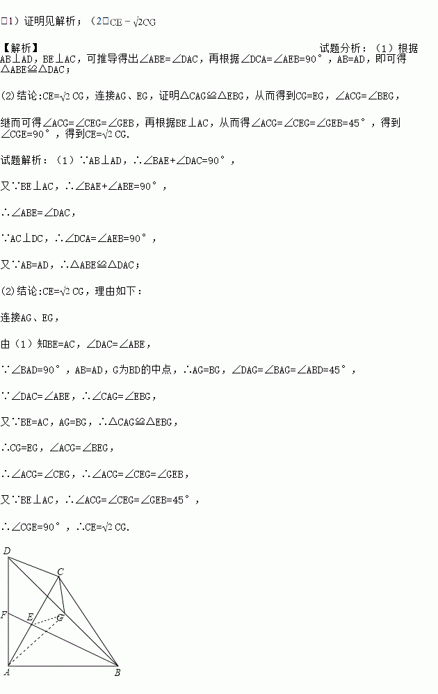(2)根据题中所给条件,猜想:CE与CG的数量关系, 并请说明理由.