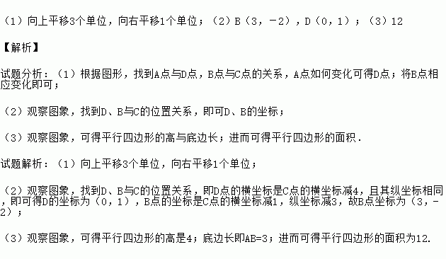 (2)若C点的坐标是(4,1),A点的坐标是(-1,-2),你能写出B, D三点的坐标吗?
