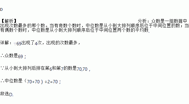A. 69,69.5 B. 69,69 C. 70,69 D. 69,70