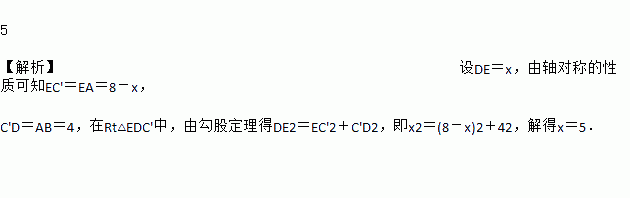 如图,矩形ABCD沿着对角线BD折叠,使点C落在C′处,BC′交AD于点E,AD=8,AB=4,则DE的长为____________.