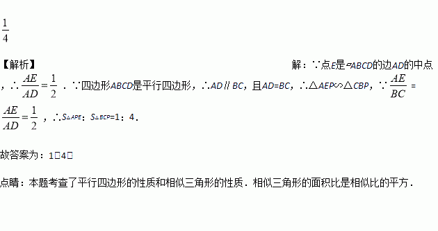 如图,点E是?ABCD的边AD的中点,BE与AC相交于点P,则S△APE:S△BCP=__.