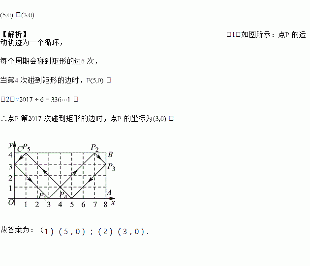 出发,沿所示方向运动,每当碰到矩形的边时反弹,每次反弹的路径与原路径成![]()